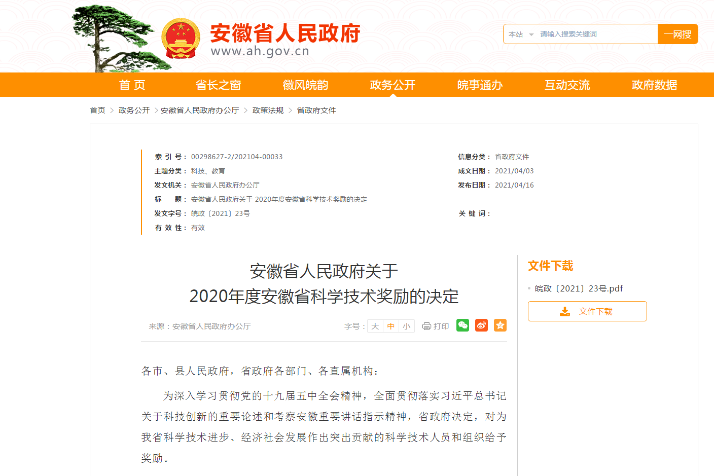 近日,安徽省人民政府發(fā)布了《安徽省人民政府關(guān)于2020年度安徽省科學(xué)技術(shù)獎的決定》(皖政【2021】23號)文件,對2020年度推動(dòng)安徽省科學(xué)技術(shù)事業(yè)進(jìn)步和經(jīng)濟社會(huì )發(fā)展做出突出貢獻的科技人員和組織給予獎勵。海螺創(chuàng )業(yè)憑借《水泥窯協(xié)同資源化處理城市廢棄物系統集成關(guān)鍵技術(shù)開(kāi)發(fā)與應用》重要科研成果榮獲安徽省科學(xué)技術(shù)獎三等獎,這是海螺創(chuàng )業(yè)首次獲得該獎項。