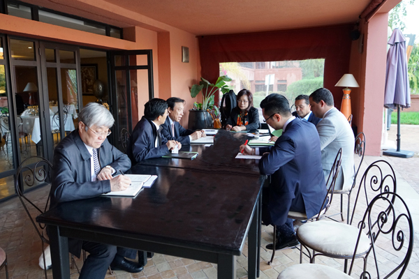??? 當天下午,紀勤應總經(jīng)理在馬拉喀什索菲特酒店會(huì )見(jiàn)了摩洛哥外貿銀行國際業(yè)務(wù)執行總經(jīng)理Agoumi先生。Agoumi先生是摩洛哥外貿銀行國際業(yè)務(wù)部的主要負責人,與中國鐵建、海特集團等國企、民企有著(zhù)長(cháng)期的合作關(guān)系。