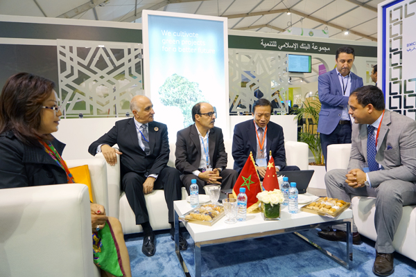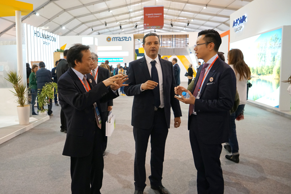 ??? 11月9日上午,摩洛哥丹吉爾大區行政長(cháng)官Omari先生在聯(lián)合國氣候大會(huì )展館現場(chǎng)會(huì )見(jiàn)了紀勤應總經(jīng)理一行。